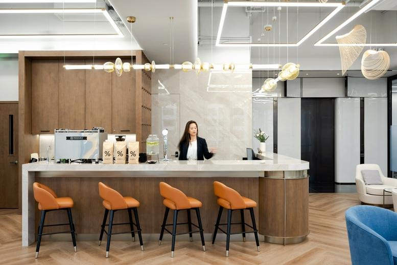 Tenants can savour specialty coffee, expertly crafted by an in-house barista, and engage in collaborative dialogue within versatile coworking areas. These contemporary offices thoughtfully balance sophistication and practicality, providing a comprehensive range of amenities, from high-performance internet connectivity to tastefully appointed executive furnishings.
