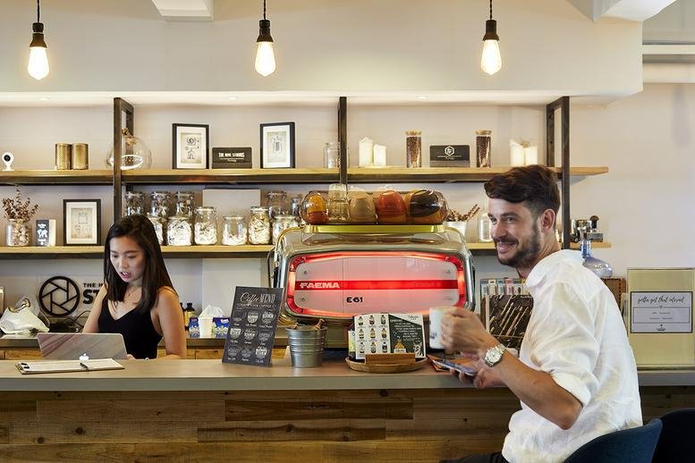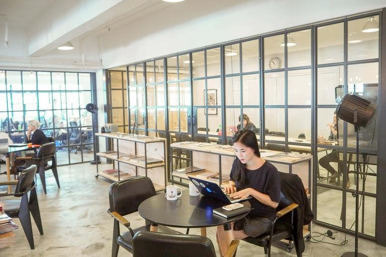 This office center provides a well-equipped workspace featuring amenities such as a spacious lounge, café, crew space, photographer booths, dedicated desks, and private offices. All are built around two professional photography studios. The center also offers Wi-Fi, a meeting room, and flexible membership options that allow 24/7 facility access via a key card entry system.